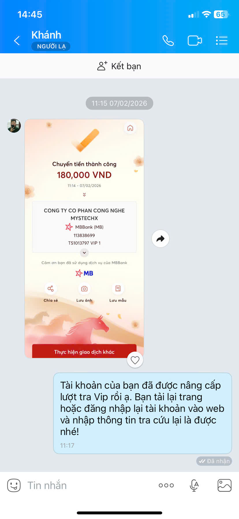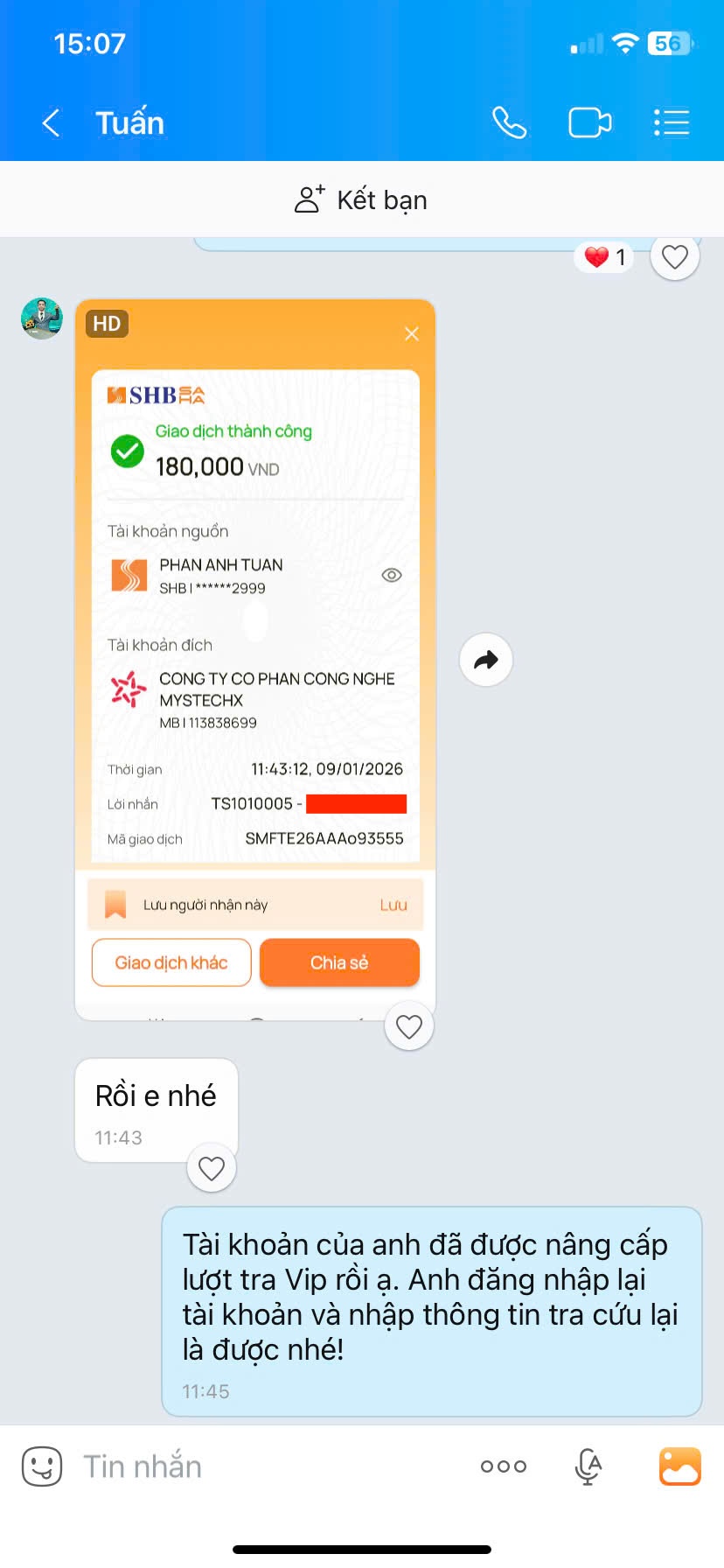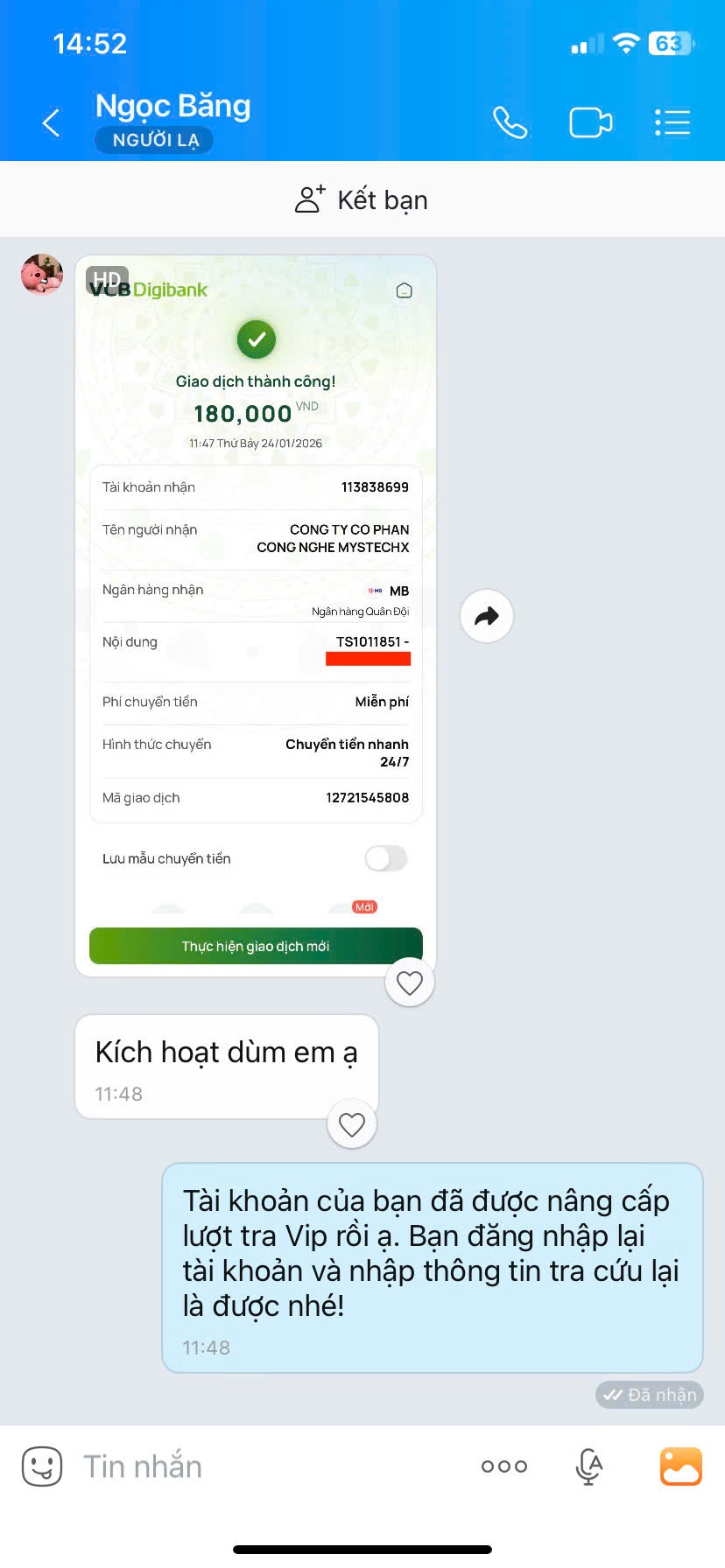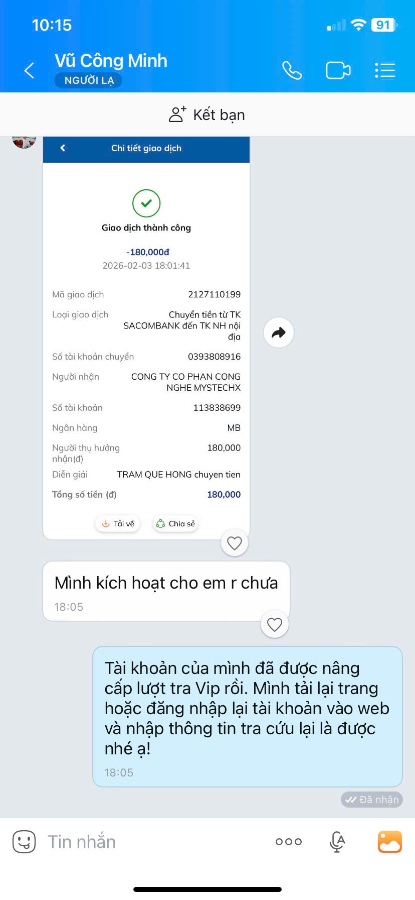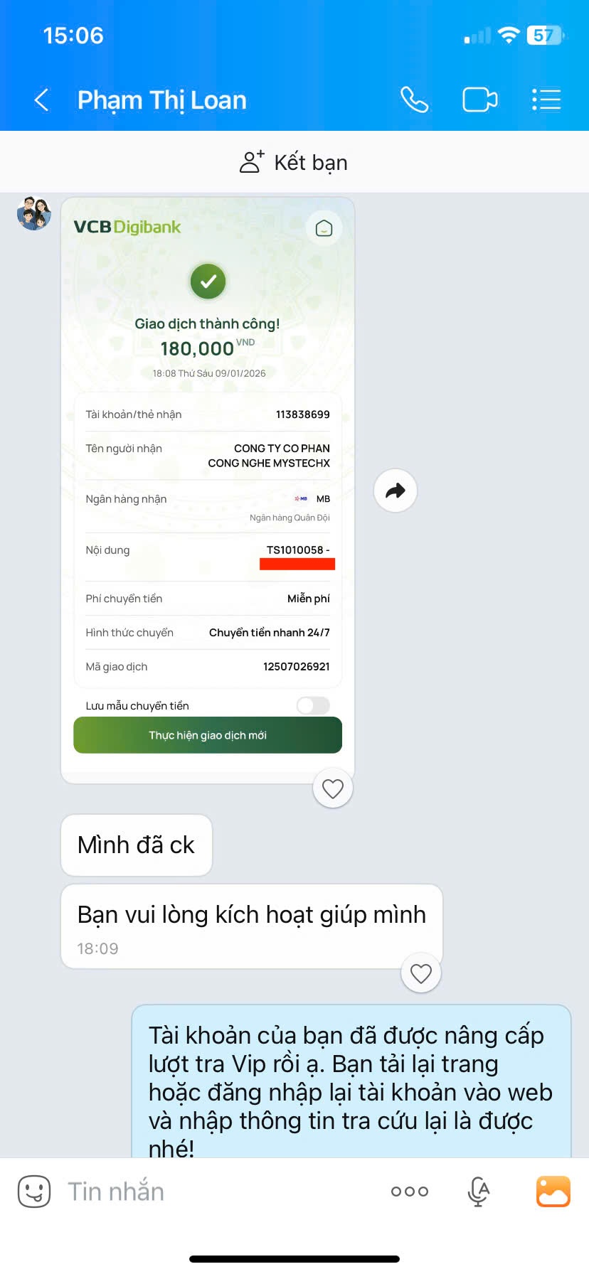 - Nếu thanh toán chuyển khoản, bạn vui lòng gửi ảnh giao dịch qua hotline để được kích hoạt VIP.