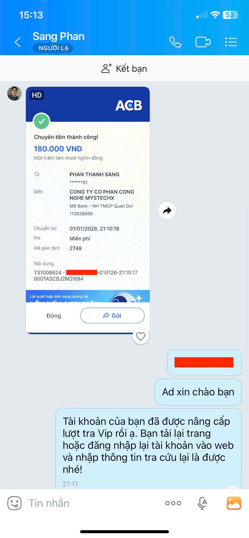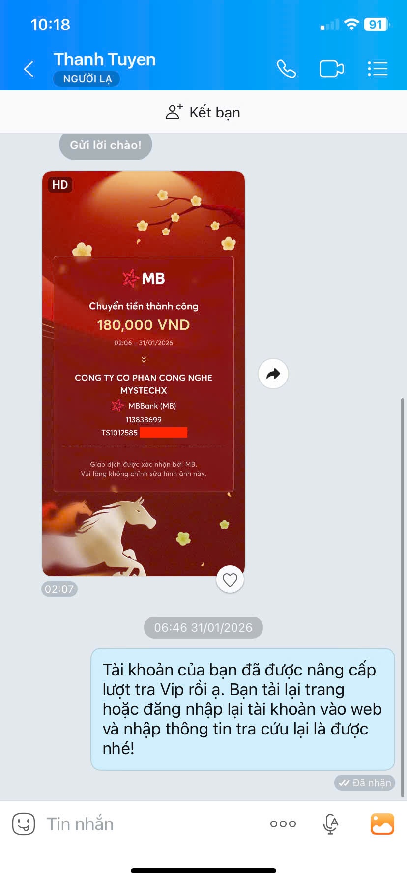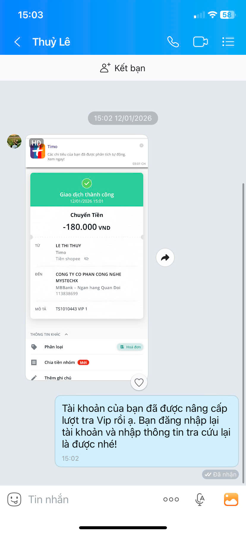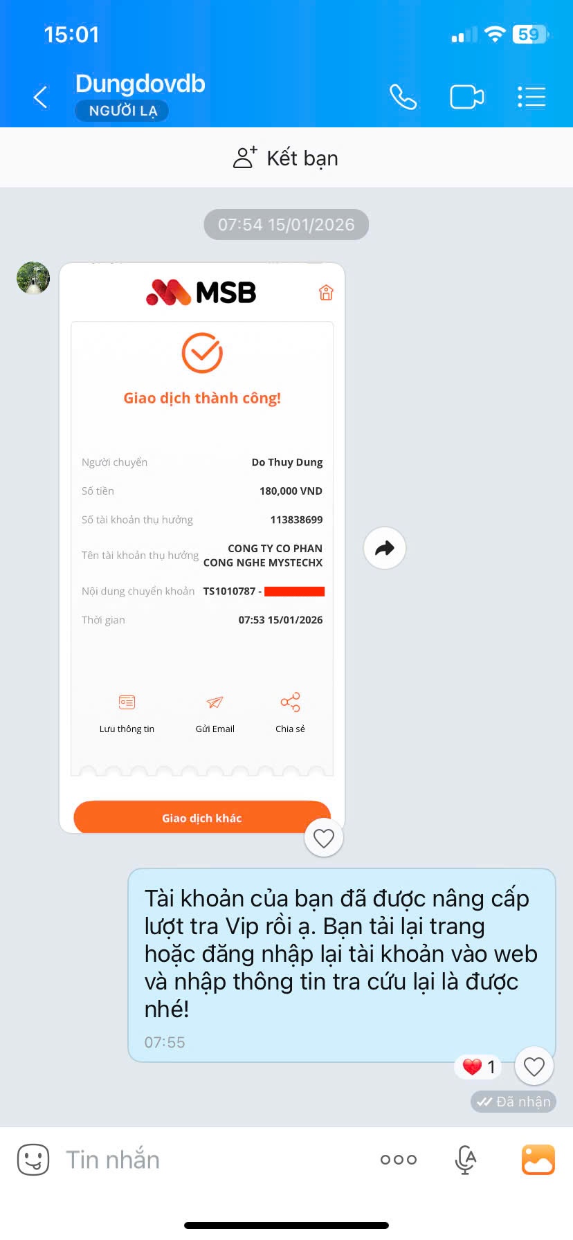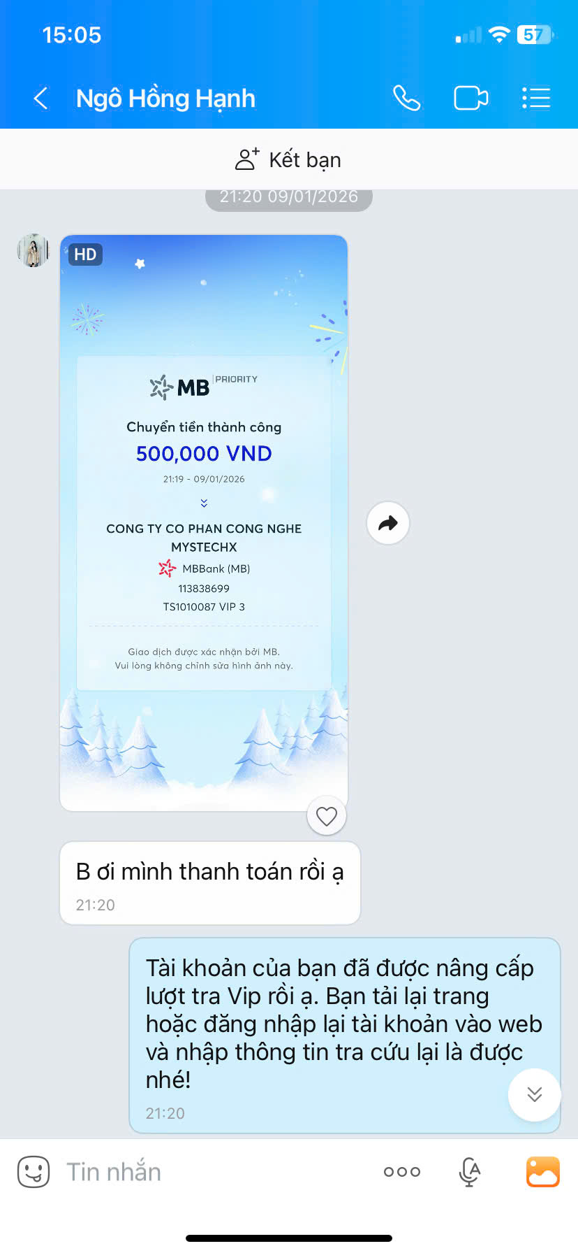 - Nếu thanh toán chuyển khoản, bạn vui lòng gửi ảnh giao dịch qua hotline để được kích hoạt VIP.