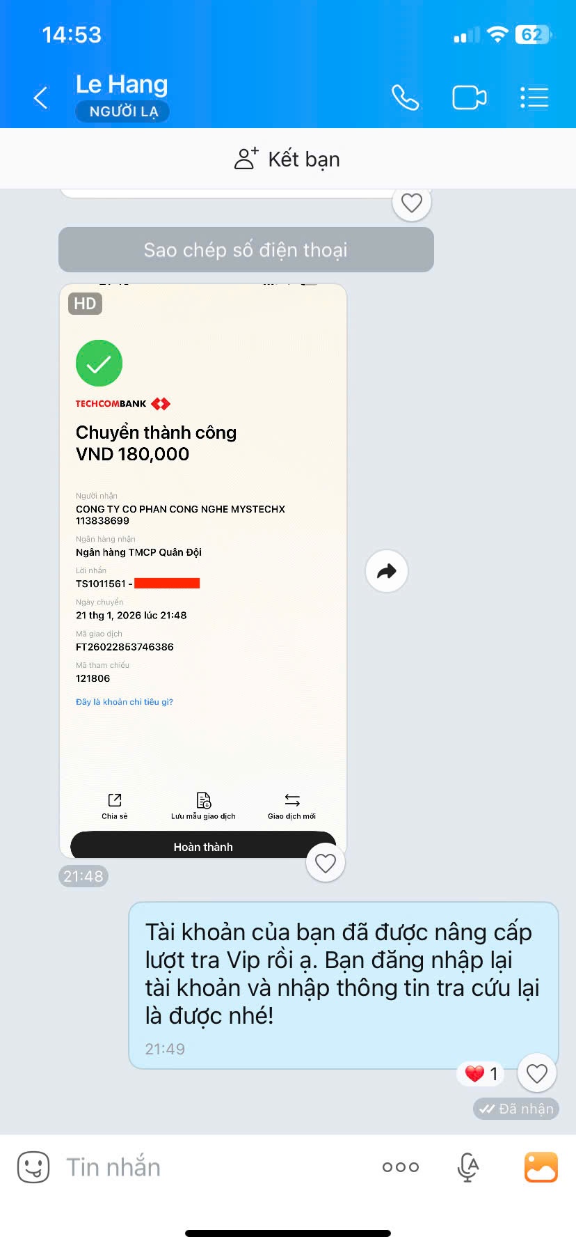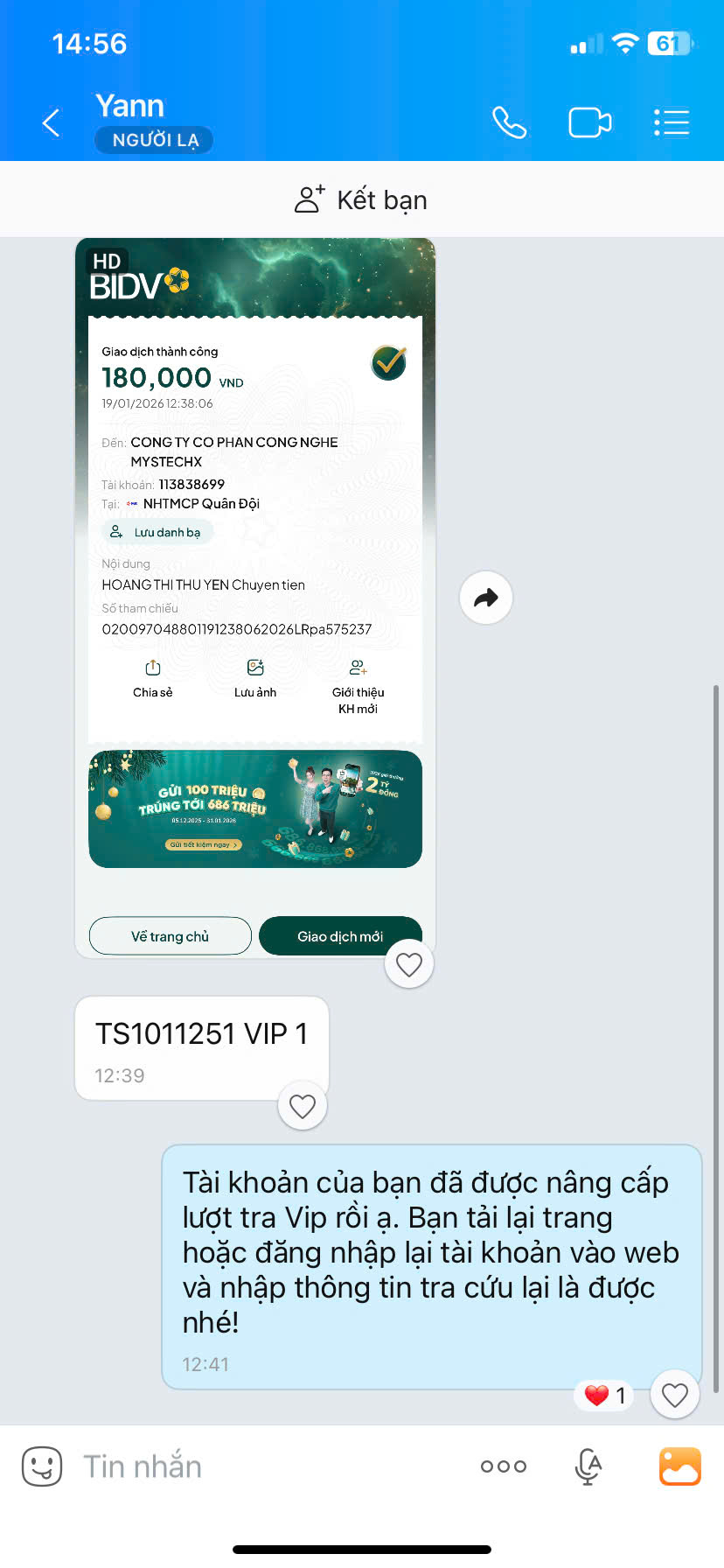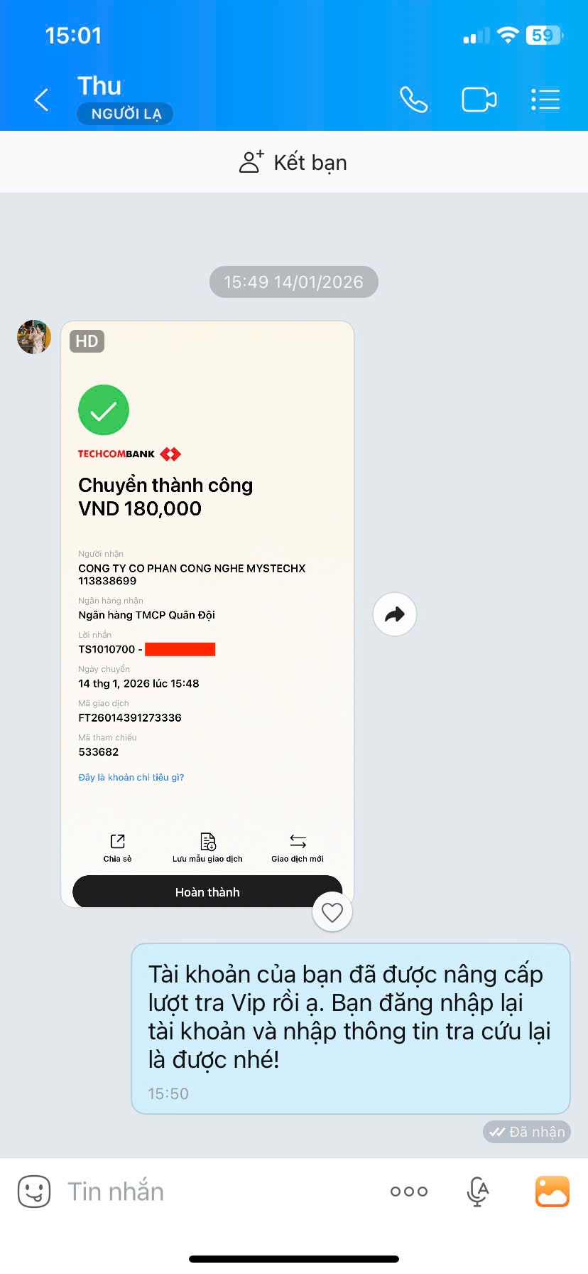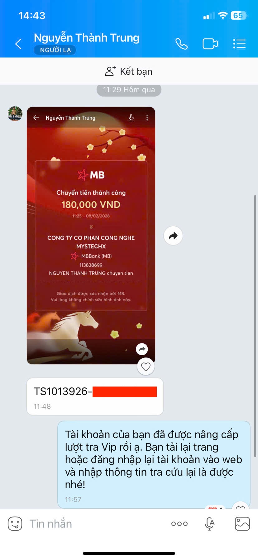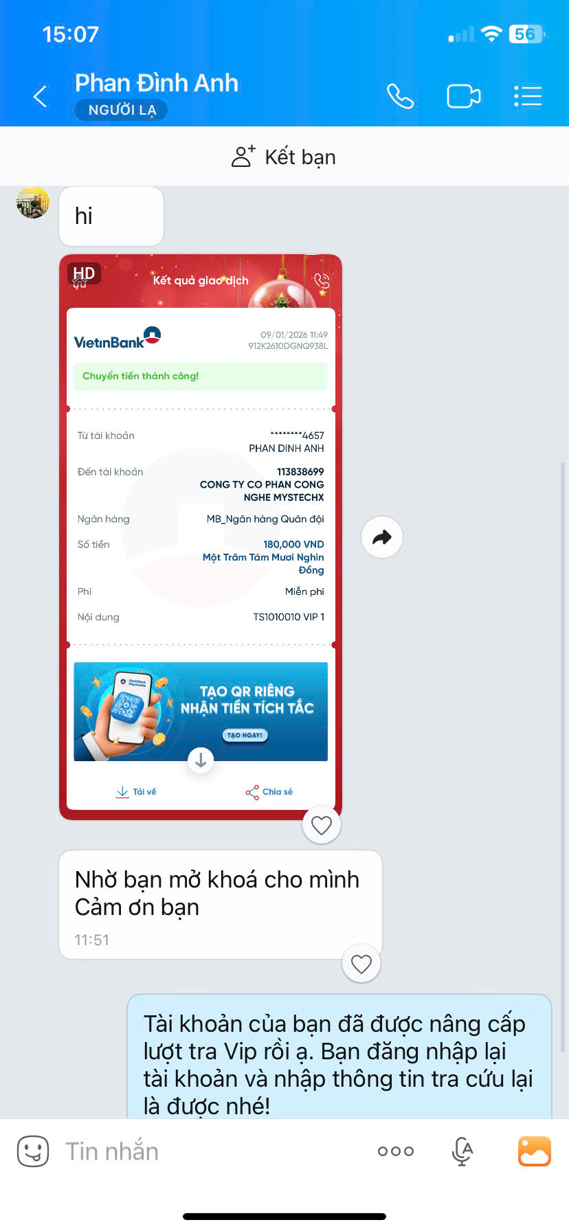 - Nếu thanh toán chuyển khoản, bạn vui lòng gửi ảnh giao dịch qua hotline để được kích hoạt VIP.